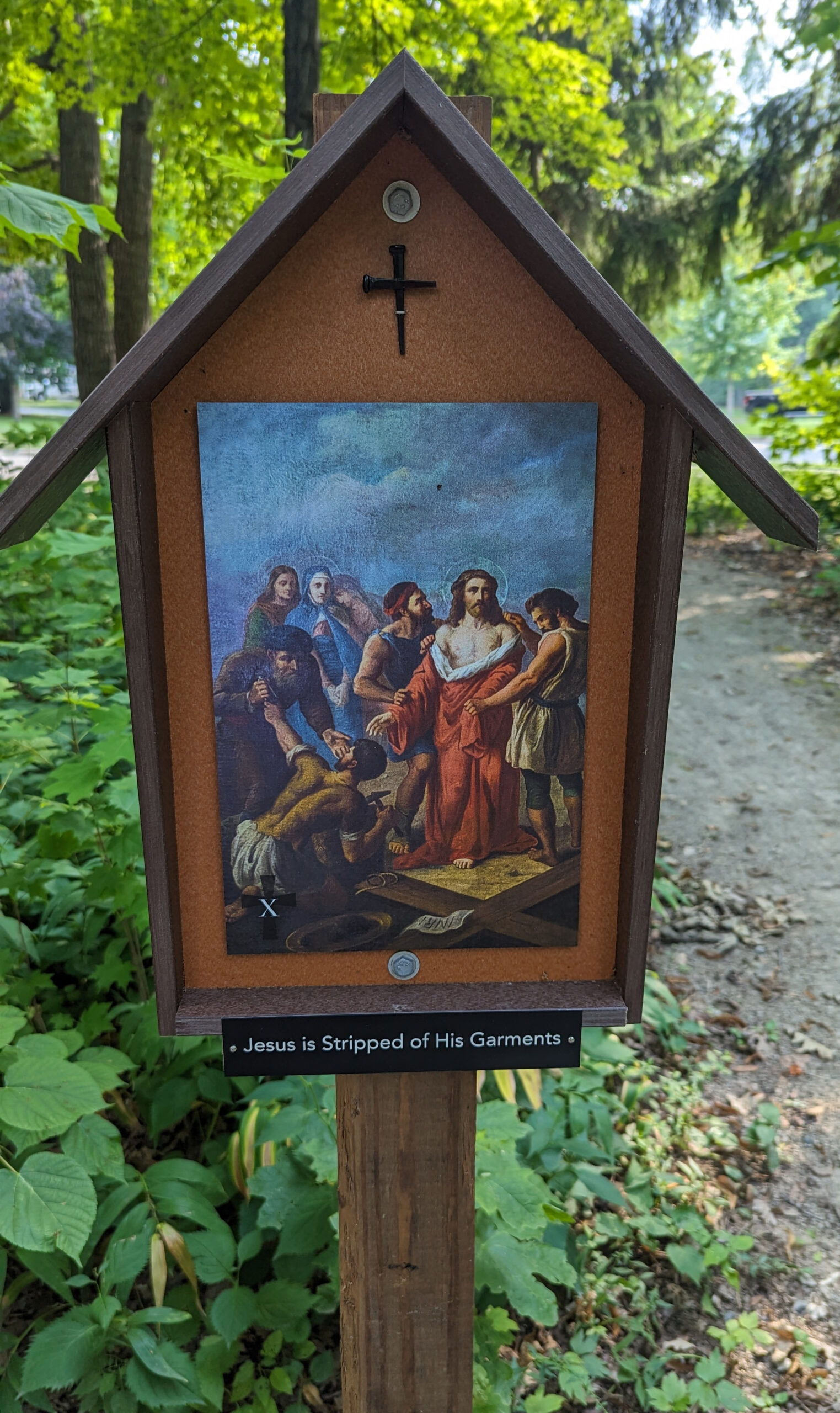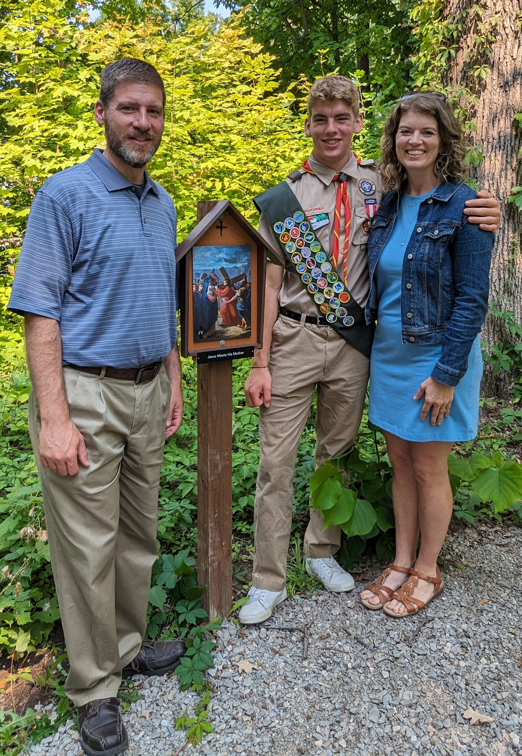 “My project was to create a gravel path through a forested area at my local church, St. Thomas More. The path has the 14 Stations of the Cross installed on wooden posts throughout the path. The Stations of the Cross are a prayerful way to meditate on Jesus’s death. The path was constructed through the use of volunteers clearing the forest for a path, and then duly compacted gravel on top. 14 holes were dug by volunteers with post-hole diggers, and then we installed the posts on which the Stations rested with concrete. The actual Stations consist of a wooden base and a painting within, all weather-proof. I purchased them from a place in Ohio. The path was constructed to act as a new and natural setting for St. Thomas More parishioners as well as the greater Appleton community to meditate on the Stations of the Cross.”