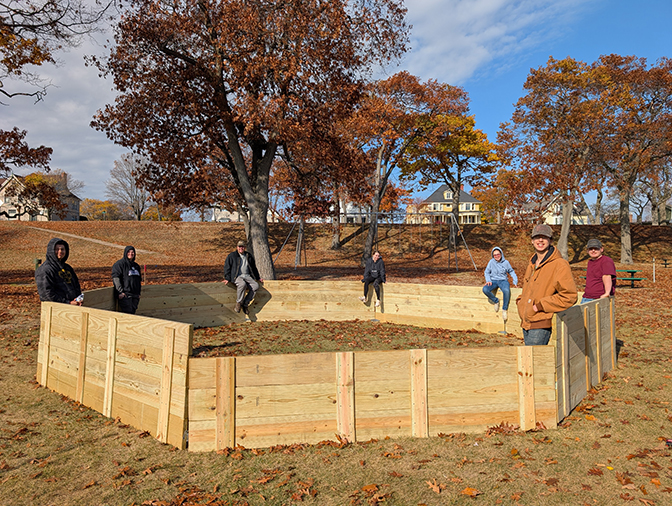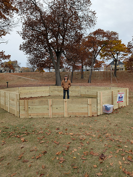 For his Eagle project, Brett developed a GaGa Ball Pit for one of the city parks. “It’s an octagon shape pit made of wood, it’s a variation of dodgeball. I chose a GaGa Ball Pit because the city didn’t have one and I thought the city would enjoy it. I put it in Ludington park which is in the city of Escanaba. I did this project with the help of 41 Lumber and about 8 helpers.