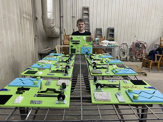 He completed Eagle Board of Review on August 20, 2024. Shawn’s eagle project consisted of making 15 fidget boards for four different facilities throughout Fox Valley, which went to Harbor Haven, Frontida Nursing Homes, and Treffert Center in Fond du Lac and the final location being Fox Valley Autism. The fidget boards were specifically made for people who have Alzheimer’s, Dementia, and Autism. Without the fidget boards these patients wouldn’t have anything to do which would end up having the potential of harming themselves.