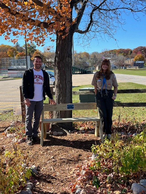 She writes about her Eagle project: “Randee and her amazing team of Scouts and family members worked hard on her Eagle Scout project to revitalize the Mooney Butterfly Garden at 1000 Islands in Kaukauna. Hazardous plants were removed, walking paths were re-established, and debris was cleared out. Randee also built and placed 6 beautiful Leopold-style benches in the garden.” This spring, she will complete her Gold Award for Girl Scouts by adding interpretive signage and educational materials about monarchs and other pollinators. She also plans to install updated butterfly houses too.
