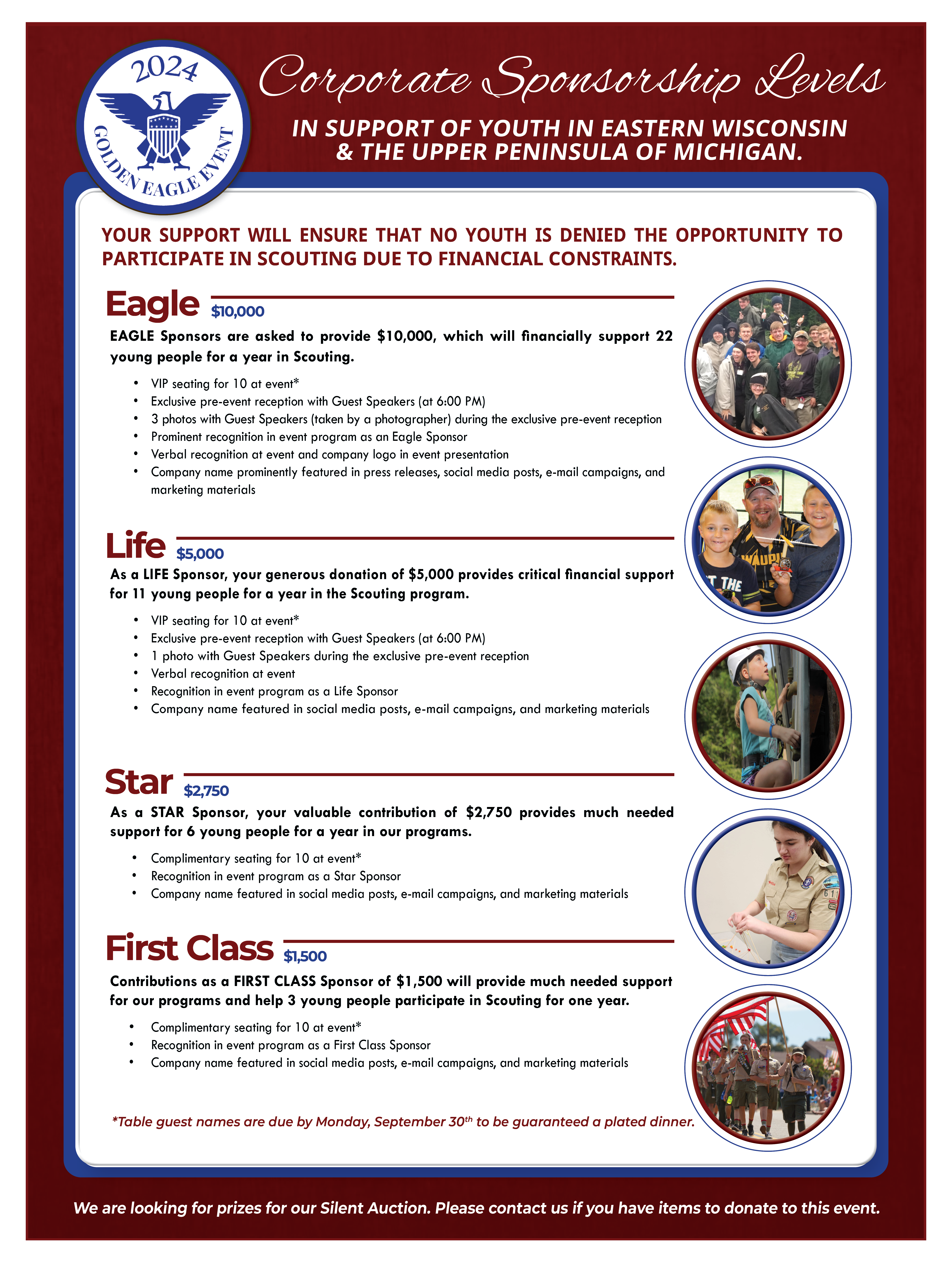 We hope you will consider sponsoring the Golden Eagle Event. Please look over the options and let us know if you have any questions.